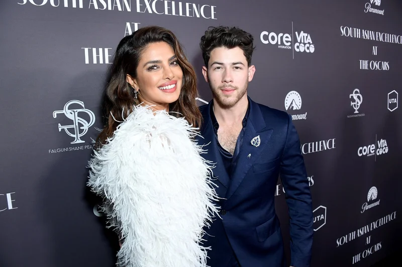 Компанию Приянке составил муж — Ник Джонас, музыкант, известный по группе Jonas Brothers. Он облачился в синий костюм и чёрную рубашку.