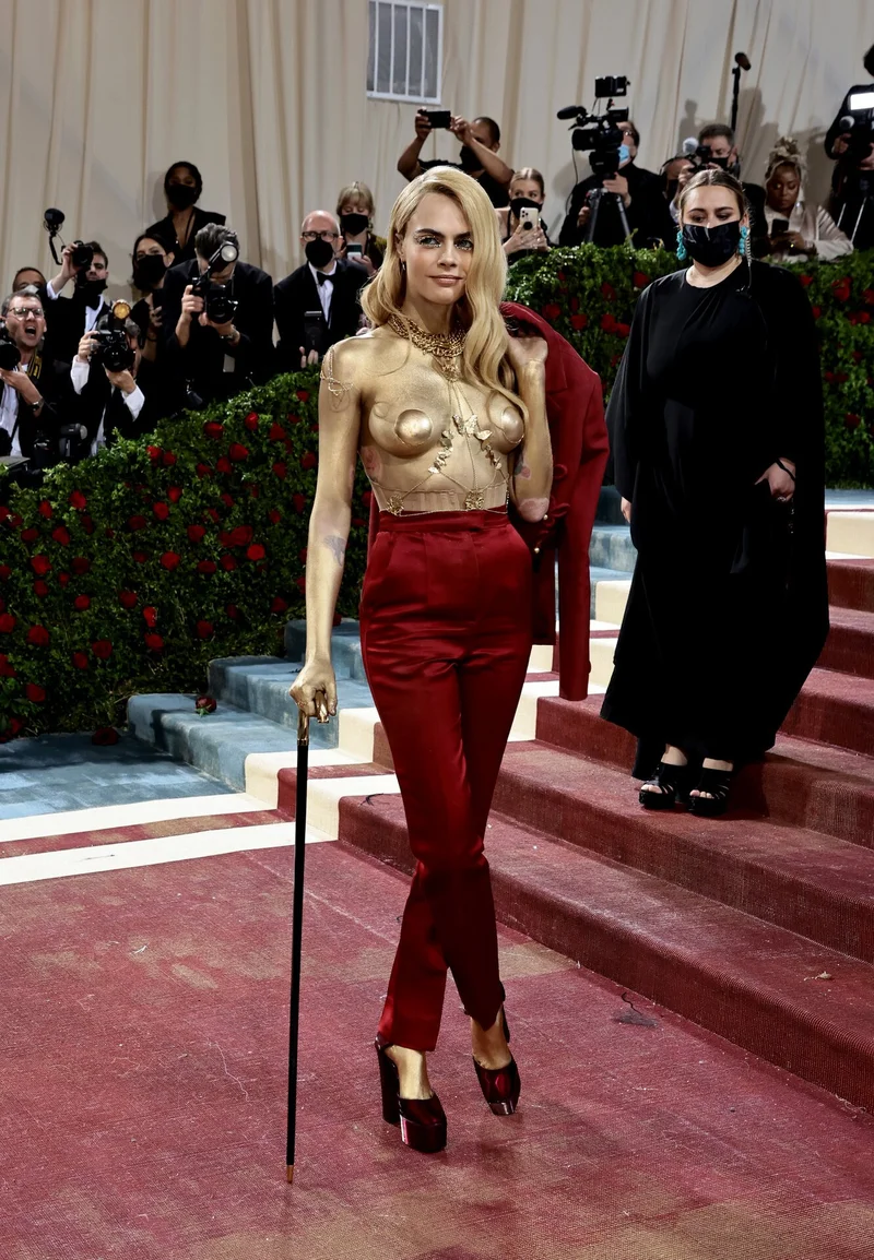 В 2022 году тема Met Gala была посвящена "позолоченной эпохе" в американской моде. Избыточность в украшениях и отсылку к нарядам того времени Кара воплотила в костюме Christian Dior красного оттенка. Продуманный образ очень понравился ее поклонникам.