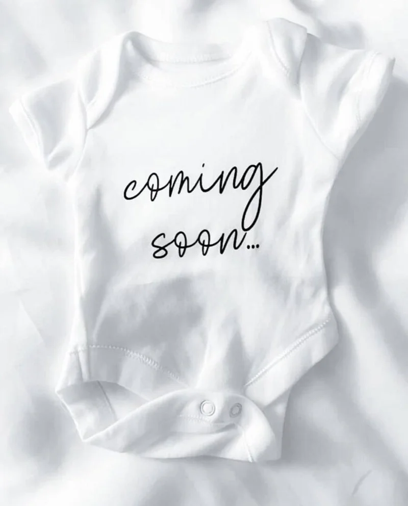 В социальных сетях Линдси поделилась новой фотографией — детского боди белого цвета, надпись на котором можно перевести как «Скоро».