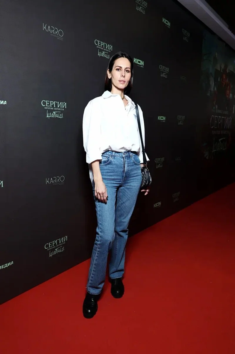 Звезда сериала "Содержанки" выбрала минималистичный наряд из белой рубашки и голубых джинсов. Классический образ всегда выглядит актуально.