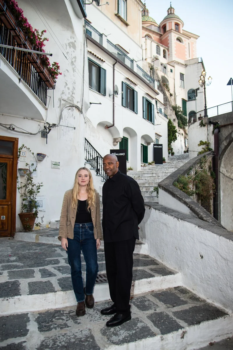 Дакота Фаннинг и Дензел Вашингтон на премьере фильма "Великий уравнитель 3", 2022 Источник фото: Ivan Romano/gettyimages.com