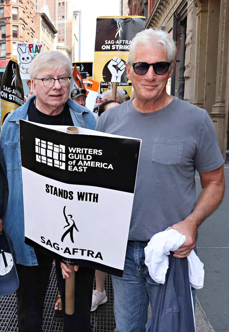 Президент WGA East Майкл Уиншип и Ричард Гир в 100-й день забастовки у Netflix и Warner Bros., 2023 Источник фото: Cindy Ord/Getty Images