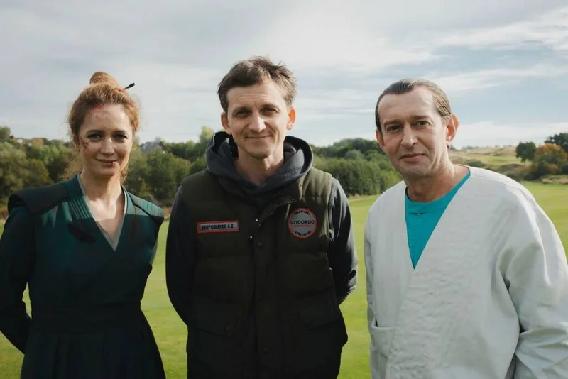 Виктория Исакова, Александр Андрющенко и Константин Хабенский Источник фото: Фотография со съёмок / Кинокомпания «Водород»; Арт Пикчерс Студия / Art Pictures Studio; Централ Партнершип