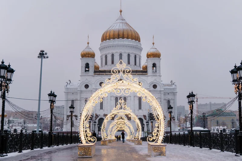 Храм Христа Спасителя изумляет стометровой высотой и отделкой белым мрамором, а его позолоченные купола ярко сияют в солнечный день, напоминая божественное чудо.