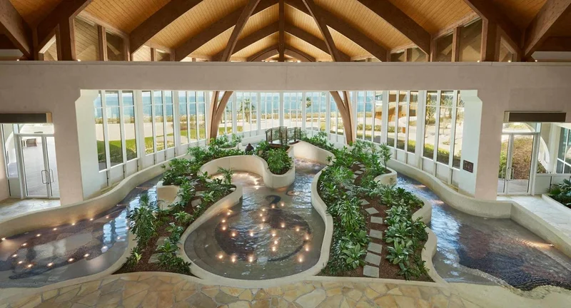 Отель имеет собственный пляж с пристанью. На его территории также расположились 5 дизайнерских бассейнов с искусственными гротами.