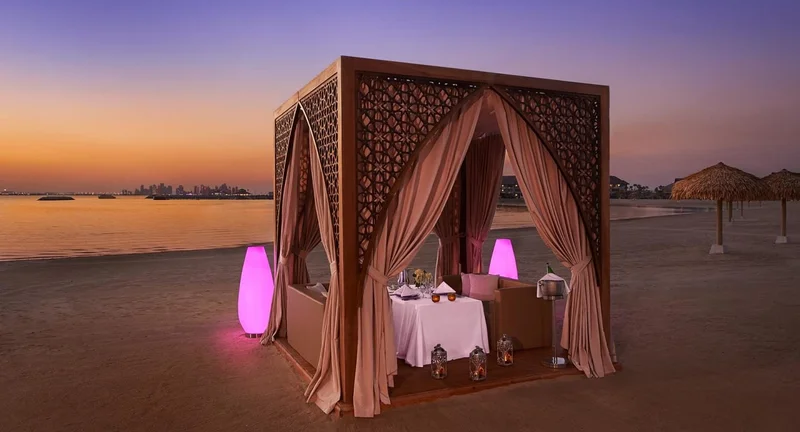 Это, пожалуй, самый известный пляжный отель Дохи. Находится в сердце искусственного острова Перл. Славится высоким уровнем сервиса, кухней для гурманов, благоустроенным пляжем и необычным дизайном со смешением арабского и европейского стилей.