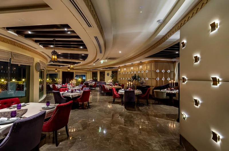 Также имеется бассейн с подогреваемой водой. За питание гостей отвечают 7 ресторанов, предлагающих блюда ближневосточной, азиатской, итальянской и арабской кухонь.