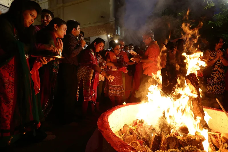 По обрядам Холи похож на масленицу. В первый день происходит сжигание чучела. После этого людям предлагают походить по углям и прогоняют скот через потухший огонь. Это делают для того, чтобы полностью избавиться от нечисти.